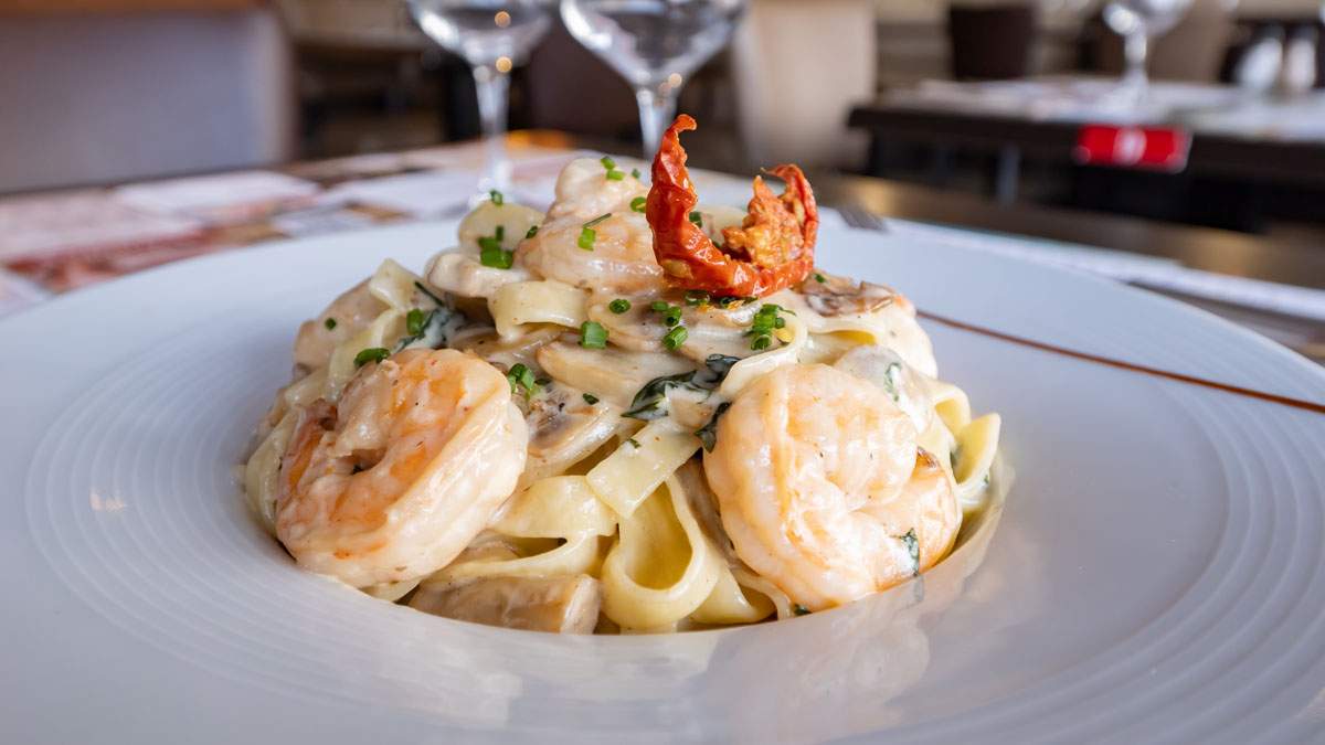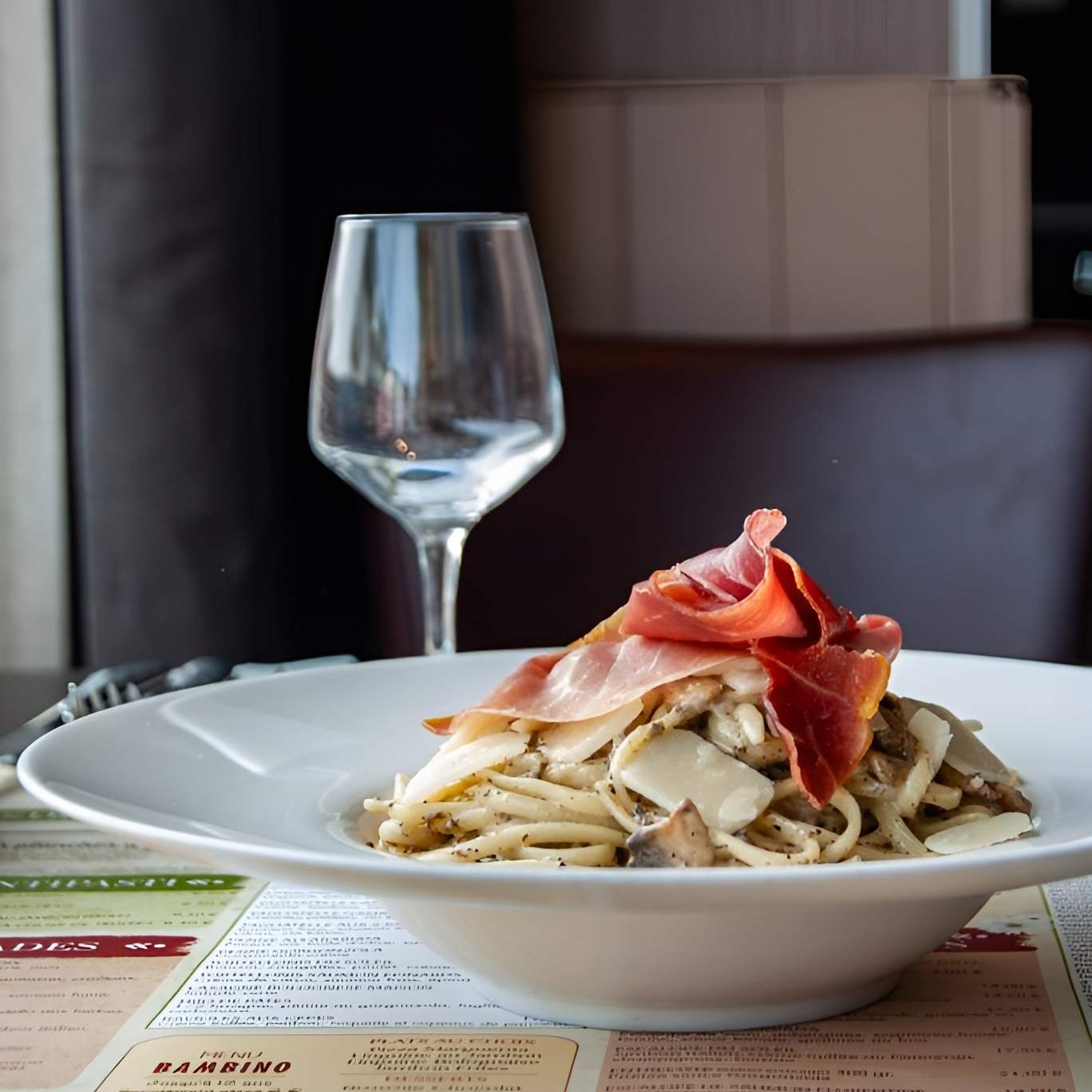 Parmi nos gourmandises, ne manquez pas la Burrata crémeuse à l'huile de truffes, les Penne au Gorgonzola, les Linguine à la bolognaise, l'escalope Marsala, et la Bruschetta di Parma et notre Osso Buco.